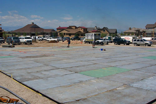 The safest way to set a tent is with the proper stakes/anchors. Holes made in asphalt (1" diameter or less) and concrete (3/8" diameter) are easily patched. Patching holes is included with your tent rental. However, our concrete weights can be used as anchors when it is not possible to to use stakes.
